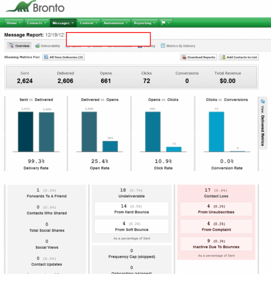 For the purpose of this exercise the Bronto email data is from an email sent on May 21, 2013 not December 19, 2012 as the report itself reflects.