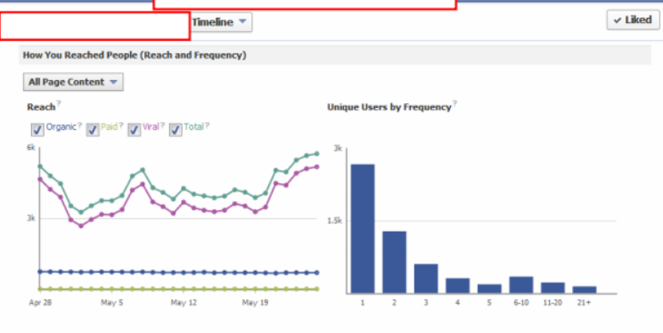 • The color dotted lines at the top of the page reveal how the page is reaching people. Viral and Organic lead the way with Viral performing at a higher number. Viral means that a user viewed your page and then pushed content out to their own feed. Organic is when someone just sees your page as is. Based on the flat line for paid content I am assuming no ads were purchased during this time frame.