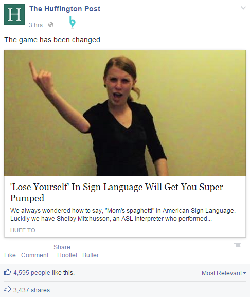 The “Lose Yourself” post is just a great example of viral video. In 3 hours, nearly 3500 shared this ASL interpreter bringing Eminem to a whole new level. (Who knew that was possible?)